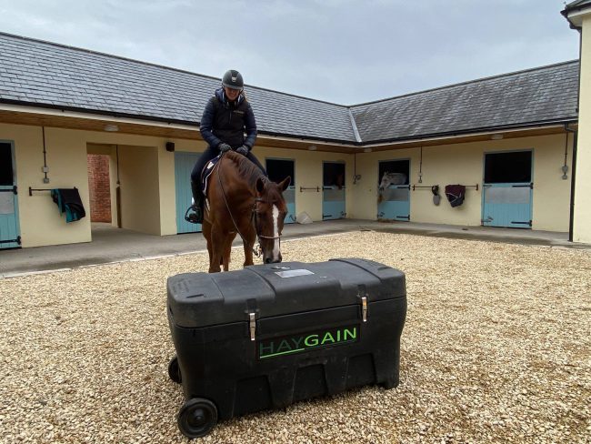 Steamed hay gives Charly Edwards’ top horse a new start. Signs of Brass Monkey’s issue did emerge in the form of coughing when dust from nearby hay harvesting blew in or a batch of dusty bedding arrived.